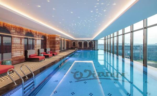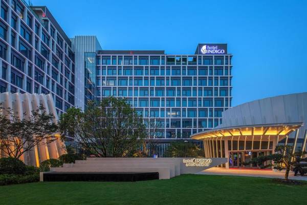 Hotel Indigo Shanghai Hongqiao is a unique blend of modern and vintage design, located a short walk from the National Convention and Exhibition Center. The hotel boasts an impressive fitness center, infinity pool, and rooftop bar. It is conveniently located near Hongqiao Railway Station and Metro Lines 210 and 17, with free shuttle service to Hongqiao Airport and Railway Station. The rooms are elegantly decorated with malachite green accents and French windows, and are equipped with a desk, flat-screen TV, and coffee machine. The hotel also offers 1000 sqm of event space and a variety of fitness options, as well as a trendy café and lively terrace bar with an infinity pool.