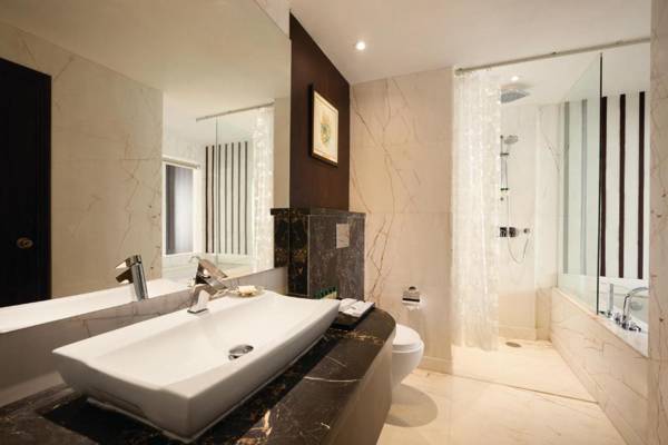 Ramada Jammu City Center is a 5-star hotel in Jammu that boasts a rooftop infinity pool, fitness center, and spa. The famous Raghunath Mandir and Raghunath Bazar are located nearby. Each room at the hotel has a desk, flat-screen TV, and private bathroom with free toiletries and a hairdryer. Guests can enjoy a variety of dining options, including a multi-cuisine restaurant, Irish style bar, and North-West Frontier cuisine restaurant. The hotel also offers a sun terrace, parking, laundry services, luggage storage, and free Wi-Fi. The staff at the reception is available 24/7 to assist guests, and the hotel is located just 2.5 miles from Jammu (Satwari) Airport.