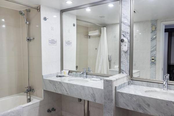 Hotel Kennedy in Santiago offers convenient amenities such as free parking and WiFi, and is located across from Parque Arauco Shopping Mall. The hotel has a luxurious atmosphere with a spacious lobby, marble floors, and elegant decor. The air-conditioned rooms are decorated in warm tones and feature amenities such as mini-bars, cable TVs, and some even have hydromassage tubs and balconies with views of the city and Andes Mountains. Guests can enjoy a full buffet breakfast at the Aquarium restaurant, which also serves delicious regional jams. The hotel also has a rooftop terrace with a pool, and offers 24-hour front desk assistance and currency exchange services. Santiago Airport is just a 25-minute drive away.