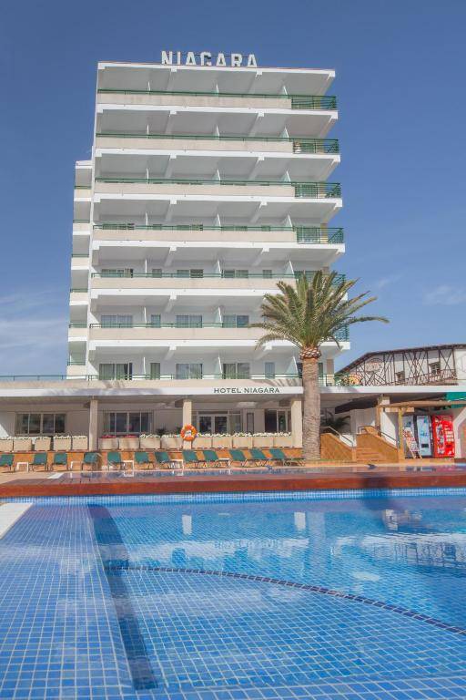 Hotel Niagara is a 4-star hotel located in Playa de Palma, offering a restaurant, seasonal outdoor pool, bar, and shared lounge. The hotel has a concierge service, tour desk, and 24-hour front desk, as well as free WiFi throughout the property. All air-conditioned rooms include a desk, safety deposit box, flat-screen TV, balcony, and private bathroom with shower. A buffet breakfast is served daily and the hotel also has a terrace and offers ping pong and car rental. Nearby attractions include several beaches and a popular nightclub, and the nearest airport is Palma de Mallorca Airport, just 3.9 miles away.