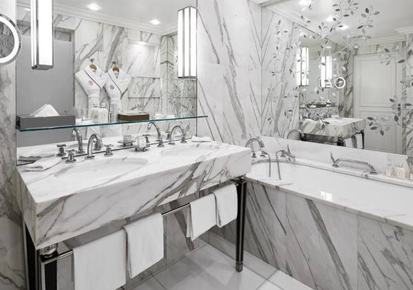 Hôtel Plaza Athénée, located on Avenue Montaigne in Paris, is a luxurious palace with a Dior Institute spa, 5 restaurants, a cocktail bar, and a seasonal ice-skating rink. The hotel offers elegant accommodations with marble bathrooms, and guests can enjoy complimentary WiFi and free access to the spa. Each room and suite features a plasma screen TV with over 200 on-demand movies, a personalized mini-bar with 80 drink options, and a choice of 5 pillow types for a comfortable sleep. Some rooms offer views of the Eiffel Tower. The hotel's cuisine includes an American breakfast, French dishes, and a summer menu. Additional amenities include a shoe shine service and twice-daily housekeeping. The hotel is conveniently located near Alma Marceau Metro Station and is a 15-minute walk from the Eiffel Tower.