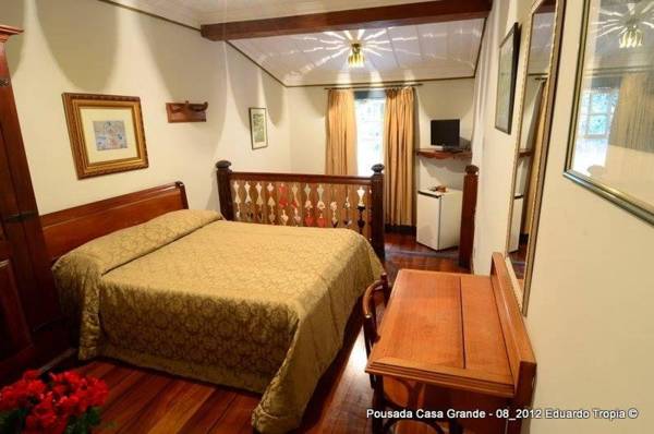 Casa Grande is a colonial-style hotel located in the heart of Ouro Preto's historical center, offering regional décor and city views with free WiFi. The hotel features a rich breakfast served daily, with a variety of tropical fruits, artisan breads, and cakes. The rooms have wooden floors and paintings by local artists, and are equipped with a fan, cable TV, mini-bar, and telephone. Covered parking is available on-site and guests can enjoy views of the colonial town from the hotel's terrace. The main square, Praça Tiradentes, is only a 5-minute walk away, and popular attractions like the Municipal Theater and Inconfidência Museum are within 1640 feet of the hotel.