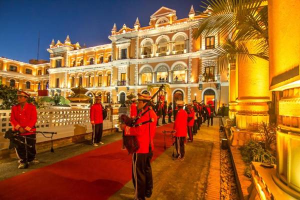 Hotel Yak & Yeti is a 5-star luxury hotel located in central Kathmandu, boasting a heritage palace, casino, outdoor pool, and 2 tennis courts. The elegant air-conditioned rooms are decorated in beautiful color palettes and equipped with amenities such as a TV, mini-bar, and personal safe. The hotel is situated in Durbar Marg, a 10-minute walk from Thamel and a 15-minute drive from the city center and airport. Guests can enjoy the beauty salon, fitness center, and business facilities, as well as fine dining at The Spice Room and drinks at The Chimney & Pub. The hotel also offers Halal meat options.