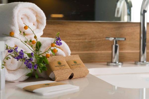 The Iguazu Jungle Lodge is a 4-star hotel with an outdoor pool, hot tub, and spacious balconies overlooking the rainforest. It is a 10-minute walk from downtown Puerto Iguazu and offers free Wi-Fi and parking. Guests can relax by the pool or arrange trips to the famous Iguazu Falls, located 10 miles away. The air-conditioned rooms feature elegant wood furnishings, flat-screen TVs, and private balconies with lounge chairs. A continental breakfast is served at the poolside terrace, and the bar offers light lunches and snacks. The lodge is also close to the Iguazu Casino and Foz do Iguaçu Airport.