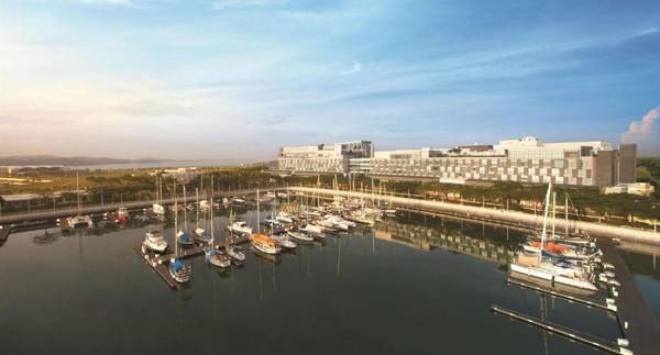 JEN Johor Puteri Harbor by Shangri-La is a luxurious hotel with a rooftop pool, fitness center, and free WiFi. It is a short drive from Legoland, Johor Premium Outlets, and the airport. Each guestroom has a flat-screen TV, seating area, and tea/coffee making facilities. The hotel also offers steam baths, massages, and 24-hour front desk services. The on-site restaurant, Harbor Café, serves local and international cuisine with harbor views, and the Sky Bar offers a variety of wines and cocktails.