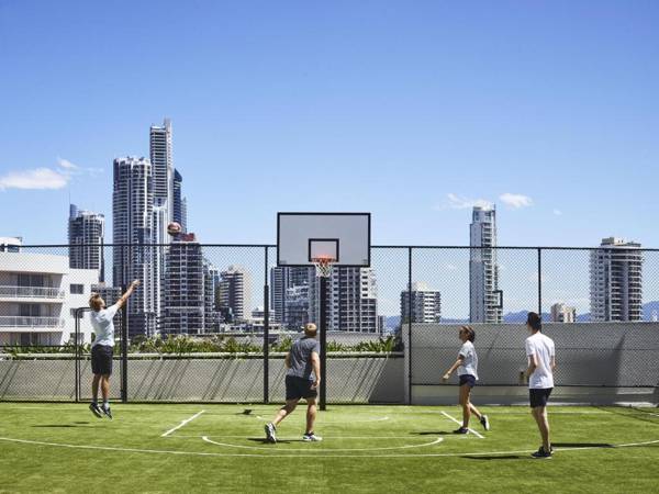 The JW Marriott Gold Coast Resort & Spa is a luxurious 28-story hotel located in the heart of Surfers Paradise. It boasts a private saltwater lagoon, sandy beaches, and an artificial reef with tropical fish. Guests can enjoy stunning views of the hinterland and river, as well as access to 5 on-site dining options and a fitness center. The hotel is situated on 2.5 acres of ponds and waterfalls, with a private marina on the Nerang River. It is conveniently located near popular theme parks and offers air-conditioned rooms with balconies and modern amenities. Guests can indulge in unique dining experiences at Misono Japanese or Citrique Restaurant, and relax with a cocktail at Chapter and Verse Lounge Bar while overlooking the lagoon pool.