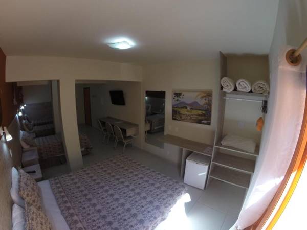 Kaliman Pousada is a large oceanfront hotel in Ubatuba with tropical gardens and views of Sapé Beach. Guests can enjoy free Wi-Fi and parking, as well as an outdoor pool and beachside cocktails. Outdoor sports like stand up paddle and surfing are available at nearby beaches. The rooms have a beachy feel with white interiors and natural light, and some have balconies with hammocks. The on-site restaurant serves regional dishes and the bar offers snacks and cocktails. A breakfast with fresh fruit and juices is also available.