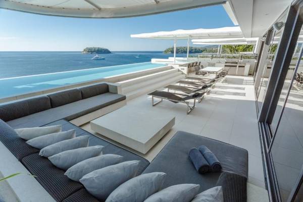 Kata Rocks is a luxurious resort with stunning views of the Andaman Sea and private plunge pools in every villa. The resort features a 35-yard infinity pool, spa, and free WiFi. Villas range from one to four bedrooms and include spacious living areas, fully-equipped kitchens, and luxurious bathrooms. Guests can enjoy services such as concierge, laundry, and babysitting, and can also use the 24-hour reception for local tours and car rentals. The resort also offers a fitness center and a restaurant serving local and western cuisine. Located between Kata and Kata Noi Beaches, it is a 10-minute walk from Kata Beach and a 29-mile drive from Phuket International Airport.