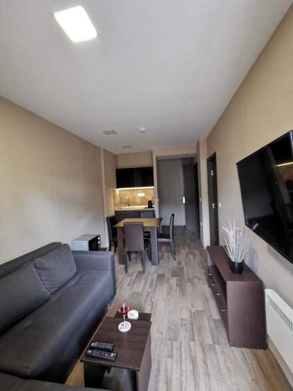 Kopaonik Lux Apartman is a mountain-view apartment located 2.3 miles from Kopaonik SKI Resort. It offers free private parking, a 24-hour front desk, and free WiFi. The apartment has 1 bedroom, 1 bathroom, a fully equipped kitchen, and a balcony with garden views. Guests can enjoy the on-site spa and wellness center, which includes an indoor pool, hot tub, and sauna. The closest airport is Constantine the Great Airport, which is 55 miles away from the apartment.