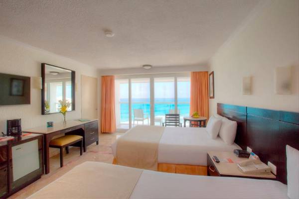 Krystal Cancun is a beachfront resort located across from the Cancun Convention Center, offering a sauna, hot tub, and oceanfront pool. The rooms are equipped with a mini-bar and cable TV, and each room has air conditioning and a safety deposit box. The resort also offers car rental, event planning, and laundry services, as well as a tour desk. Guests can enjoy traditional Mexican cuisine and live music at the on-site restaurant, Hacienda El Mortero, and a buffet breakfast and multiple bars are also available. The resort is within walking distance of shops and restaurants, and guests can easily access recreational activities such as snorkeling, sailing, and fishing.