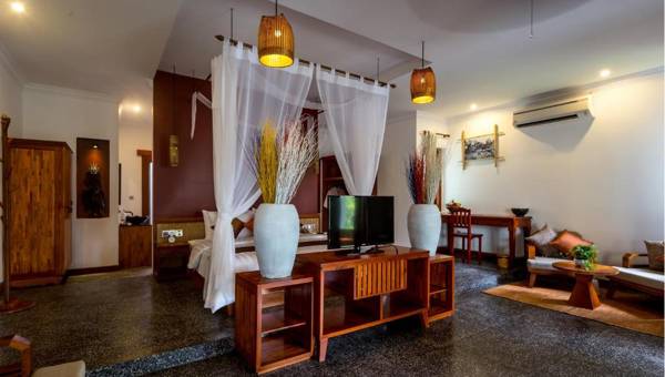 La Rivière d' Angkor in Siem Reap offers an outdoor pool and on-site restaurant, as well as free WiFi throughout the property. It is conveniently located within walking distance to Pub Street, a popular area with restaurants and bars. Each suite is uniquely decorated and includes air conditioning, a mini-bar, and a seating area. Some suites also have a balcony with views of the pool or garden. The modern bathrooms are stocked with amenities such as a hairdryer, bathrobes, and toothbrushes. The hotel also has a terrace, bar, and offers activities like cycling. Free parking and airport pick-up are available, and the hotel is a short drive from the famous Angkor Wat temple. Complimentary airport transfers and shuttle service to the city are also provided.
