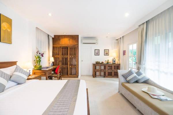Laksasubha Hua Hin is a 4-star resort with a private beachfront and a free-form outdoor pool. It offers a spa and free Wi-Fi, and is located 1.6 mi from the Thai-Victorian style Klai Kangwon Palace. The Hua Hin Airport is a 15-minute drive away. The guest rooms have traditional Thai accents, private balconies, and modern amenities. The on-site Zaanti Spa offers various treatments and activities such as Thai cooking classes and horseback riding. The Oceanfront Restaurant serves a mix of Mediterranean, Italian, and Thai cuisine, and offers a daily buffet breakfast.