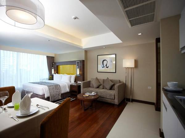 Legacy Suites Hotel Sukhumvits is a well-furnished property with an outdoor pool and rooftop tennis court, located in Sukhumvit 29 and a 10-minute walk from Asok BTS Skytrain Station. It is also within walking distance of Emporium Shopping Center and Sukhumvit MRT Station. The hotel offers a blend of modern and traditional décor, with each room featuring a 32-inch flat-screen TV, kitchenette, and free Wi-Fi. Guests can also enjoy the use of a fitness center and 24-hour front desk, as well as dining options at Chillz Restaurant and Hama-Ichi. Room service is also available.