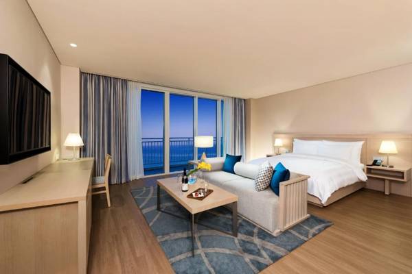 Lotte Resort Sokcho is a luxurious resort overlooking the sea, with a water park, infinity pool, fitness center, and restaurants. It is conveniently located near Sokcho Beach and offers free WiFi throughout the resort. The rooms are equipped with modern amenities and some have a spa bath. The resort also has a breakfast buffet and a Korean restaurant, as well as a bar for cocktails. It is a short drive to popular attractions like Seorak Cable Car and Sokcho Express Bus Terminal, and Yangyang International Airport is also easily accessible.