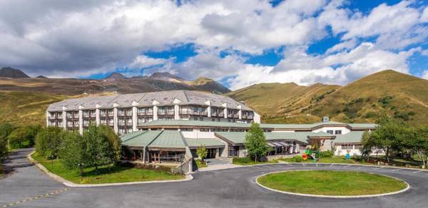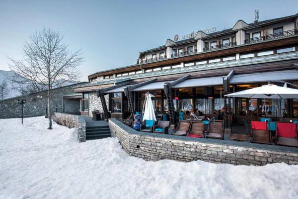 Marco Polo Hotel Gudauri is a ski-in ski-out mountain accommodation surrounded by the majestic Caucasus Mountains, located 6572 feet above sea level. The hotel has 30 years of history and is known for pioneering Georgian mountain action. Gudauri Elevator 1 Pirveli is just a few yards away, making it convenient for guests to access the slopes. The hotel offers a complimentary access to its Spa facilities, which includes massages, hot tub, sauna, and a sun terrace. Each guestroom has a modern alpine interior, with amenities such as a flat-screen TV, mini-bar, and private bathroom with free toiletries. The hotel's signature restaurant, Soliko, serves a variety of European and Caucasian dishes, and guests can also relax at the Marco Polo Kamin Bar with a fireplace. Other facilities include a fitness center, kids playroom, and activities such as bowling and indoor tennis courts. The hotel also offers a 24-hour front desk, ski pass sales, and ski equipment hire. Tbilisi International Airport is 87 miles away and a shuttle service can be arranged at the hotel's reception.