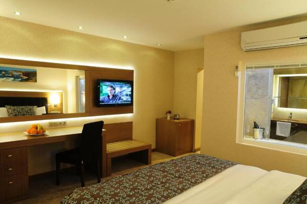 Marina Boutique Hotel Fethiye is a luxurious hotel with a charming marina setting and picturesque views of Fethiye Bay. The hotel has an outdoor pool surrounded by Mediterranean gardens and stylish rooms with private balconies overlooking the sea. The rooms also feature marble bathrooms, flat-screen TVs, designer working stations, and free WiFi. Guests can enjoy a daily breakfast buffet and regional cuisine from the Mugla Province at the hotel's restaurant, which offers the option of outdoor dining by the waterfront.