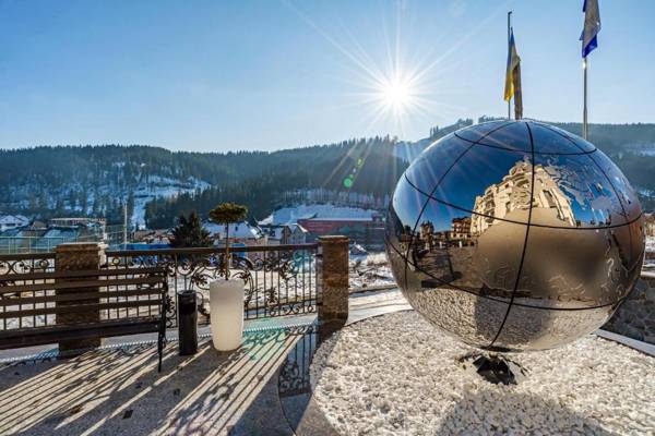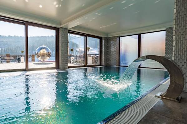 MARION SPA, located in Bukovel, offers a range of amenities including a bar, spa and wellness center, terrace, and free WiFi. The property also has a restaurant, seasonal outdoor and indoor swimming pools, and a hammam. With a 24-hour front desk and room service, guests can enjoy a comfortable stay. The rooms feature a closet, private bathroom, and some have a safety deposit box. All rooms also come with a flat-screen TV and slippers. Guests can enjoy a continental or buffet breakfast and have access to a hot tub and sauna. The area is popular for hiking and skiing, with ski equipment rental available. The nearest airport is Ivano-Frankivsk Airport, located 60 miles from the property.