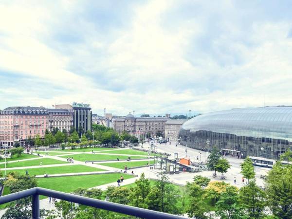 The Mercure Strasbourg Center Gare is located across from the TGV train station and a short walk from the Hyper Center and Petite France in Strasbourg. The rooms are air-conditioned and have Wi-Fi and satellite TV, and there is a panoramic elevator for convenience. The hotel's bar, Le M Bar, offers cocktails and snacks under a glass ceiling. The European Parliament is only 3.1 miles away, and there is 24-hour public parking nearby.