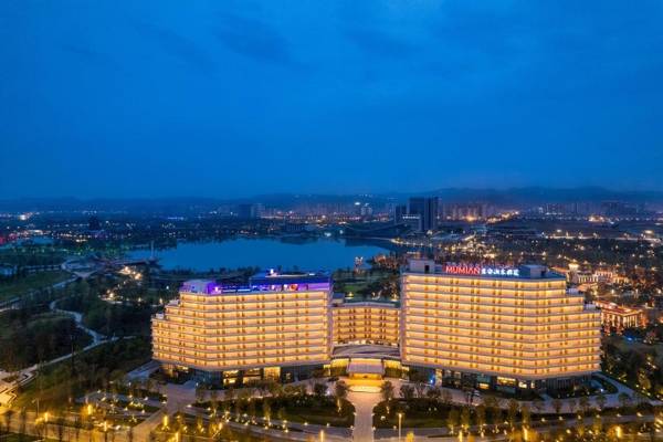 Mumian Chengdu Dong'an Lake is a hotel in Chengdu with a restaurant, fitness center, bar, and garden. It offers free WiFi and has a 24-hour front desk and room service. The hotel also has an indoor pool and concierge service. The rooms have air conditioning, a seating area, flat-screen TV, safety deposit box, and private bathroom with shower, bathrobes, and slippers. Some rooms have balconies and lake views. Guests can enjoy a buffet or American breakfast and the hotel has a terrace. It is located 10 miles from New International Convention & Exposition Center Chengdu Century City and Chunxi Road. The nearest airport is Chengdu Shuangliu International Airport, 16 miles away.