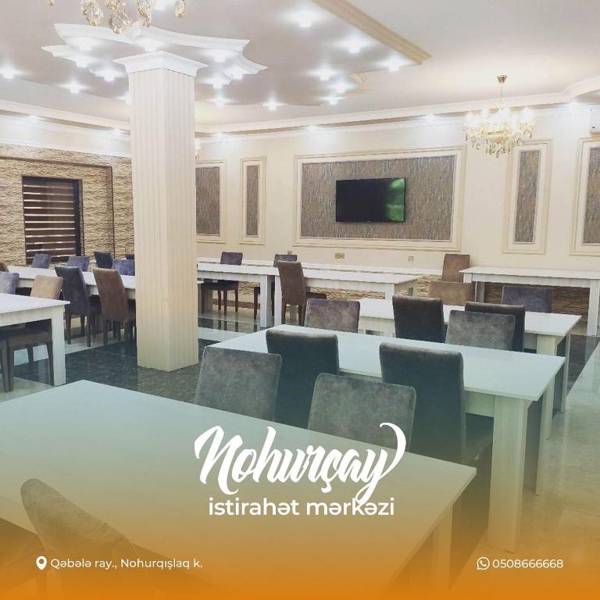 Nohurçay Family Holiday is a 4-star hotel in Gabala with a restaurant, bar, garden, and terrace. The hotel offers 24-hour front desk and room service, as well as free private parking and paid airport shuttle service. Rooms are equipped with air conditioning, a balcony with a lake view, a private bathroom, and a flat-screen TV. Some rooms also have garden views and an electric tea pot. The hotel serves à la carte or halal breakfast and is located 28 miles from Shahdag and 18 miles from İsmayıllı.