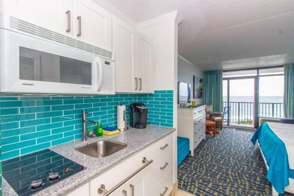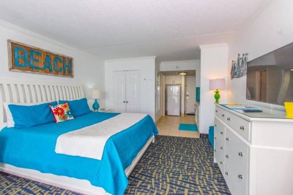 Oceanfront King Suite Sand Dunes 2433 is a vacation home with stunning sea views and a balcony, located near popular attractions such as Carolina Opry Theater, Myrtle Beach, and Broadway at the Beach. The accommodation offers free WiFi and a 24-hour front desk for convenience. The suite features 1 bedroom, a TV with cable channels, and a fully equipped kitchen with a microwave and fridge. It is also close to Myrtle Beach Convention Center and Myrtle Beach International Airport, making it a convenient choice for travelers.