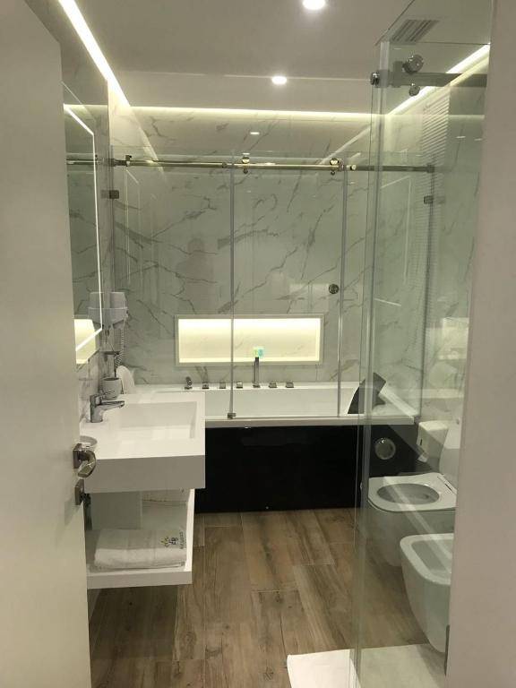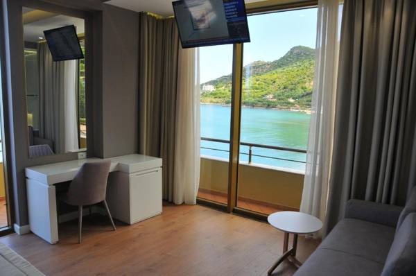 Paradise Beach Hotel in Vlorë offers air-conditioned rooms with free WiFi and a balcony overlooking the sea. Each room includes a flat-screen TV, DVD player, desk, mini-bar, and fridge, with some also featuring a seating area with sofas. The private bathrooms have a shower or spa bath, bidet, and hairdryer, as well as complimentary toiletries and slippers. The hotel has its own restaurant, bar, shared lounge, and garden, as well as meeting facilities and water sports options. Guests can also enjoy activities such as diving, canoeing, fishing, cycling, and hiking nearby, with the Orikum Marina just 3.4 miles away and popular attractions like Kuzum Baba Viewpoint and Vlorë Castle within a short distance. Free parking is available on site.
