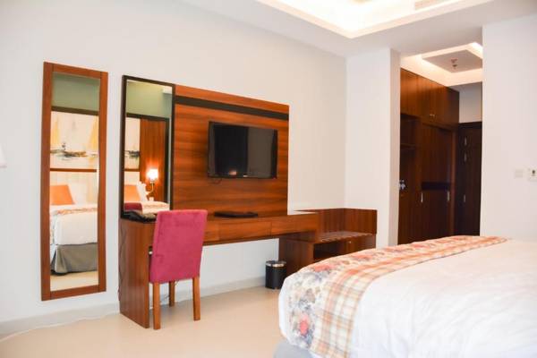Park Town بارك تاون is a 4-star hotel situated in Jeddah, only 3.8 miles from Mall of Arabia Park. It offers a range of amenities including a fitness center, free private parking, a garden, and a terrace. The hotel also has a concierge service, 24-hour front desk, airport transportation, and room service. All rooms are air-conditioned and equipped with modern facilities such as a desk, electric tea pot, fridge, safety deposit box, flat-screen TV, and a private bathroom with a hot tub. Some rooms even have a patio and garden views. Guests can enjoy free WiFi throughout the property and are provided with bed linen and towels. The hotel is conveniently located near popular attractions such as Jeddah Mall (4.5 miles) and Al Shallal Theme Park (6 miles). The nearest airport is King Abdulaziz International Airport, only 6 miles away.