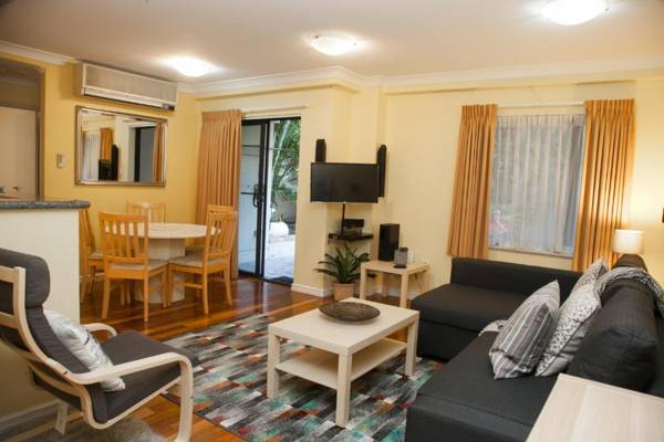 Perth Short Stays is located in Perth, just a short distance from the Perth Convention and Exhibition Center and Perth Concert Hall. The property offers an outdoor pool and fitness center, as well as free WiFi and parking. Each apartment has a seating and dining area, flat-screen TV, and fully equipped kitchen. The private bathrooms come with free toiletries, and guests can also dine at the on-site restaurant. Domain Stadium is nearby, and Perth Airport is 6.8 miles away.