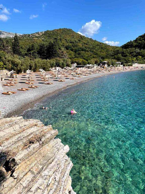 Plaza Lucice is a 4-star guesthouse located in Petrovac na Moru, just a 3-minute walk from Lucice beach. It offers a restaurant, free private parking, a shared lounge, and a private beach area. The guesthouse has a 24-hour front desk and concierge service. The air-conditioned rooms have a garden view, free WiFi, and amenities such as a seating area, flat-screen TV, safety deposit box, and private bathroom with shower, slippers, and hairdryer. Some rooms also have a kitchenette with a fridge, minibar, and stovetop. There is a sun terrace for guests to enjoy and popular beaches like Petrovac Beach and Buljarica Beach are within walking distance. The nearest airport is Tivat, 25 miles away, and the guesthouse offers a paid airport shuttle service.