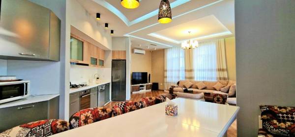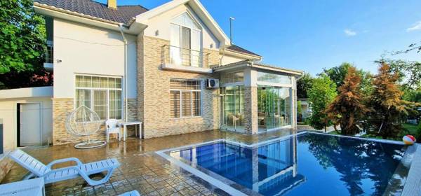 Qafqaz Marvelous Edge is a self-catered villa located in Gabala, offering a shared lounge and terrace. It features a private pool, garden grill facilities, and free WiFi and parking. The villa has 5 bedrooms, 4 bathrooms, and a fully equipped kitchen and patio with pool views. Other amenities include a flat-screen TV, seating area, and washing machine. The reception speaks English, Russian, and Turkish, and nearby attractions include Shahdag and İsmayıllı.