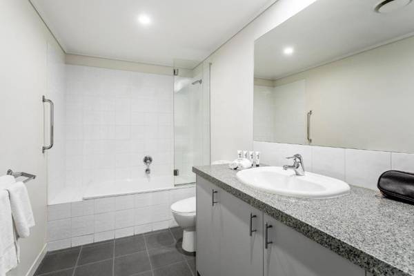 Quest Southbank is a modern apartment complex situated in a quiet location near Southbank Promenade. The apartments feature fully equipped kitchens and private balconies. The Arts Center and a tram stop are within walking distance, and popular attractions like Crown Casino and Federation Square are a 10-minute walk away. Each tastefully furnished apartment includes a private bathroom, laundry facilities, and a separate living room with digital TV and a DVD sound system. Guests can enjoy a free WiFi plan and cable TV in all apartments, with executive apartments offering views of the city, bay, or gardens. The complex also offers a fitness room, sauna, on-site parking, and services such as grocery shopping, luggage storage, and 24-hour reception.