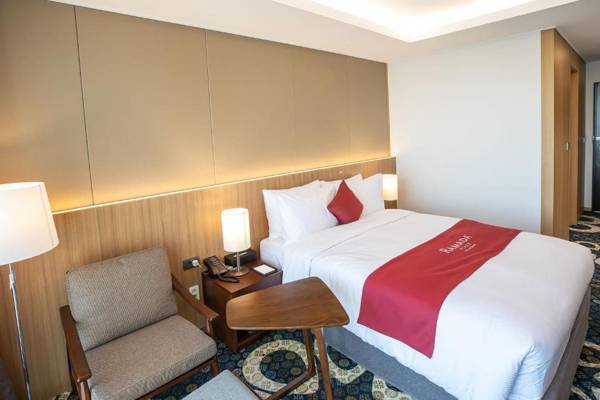 Ramada Plaza by Wyndham Dolsan Yeosu is a 4-star hotel located in Yeosu, just 1 mile away from Turtle Ship. It features a restaurant, bar, and garden, and offers services such as a 24-hour front desk and a business center. Guests can also enjoy drinks at the snack bar. Each room at the hotel comes with a wardrobe, TV, and private bathroom, and guests can also use the fridge provided in their rooms. Popular attractions near the hotel include Yeosu Maritime Cable Car, Dolsan Park, and Dolsan Bridge. The closest airport is Yeosu Airport, which is 11 miles away.