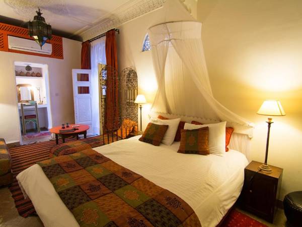 Riad La Terrasse Des Oliviers is located in the Bab Doukkala district of Marrakech, a short walk from popular attractions such as Jamaâ El Fna Square and Gueliz. The riad offers a daily breakfast, a swimming pool, and free Wi-Fi for guests. Each room is uniquely decorated with traditional Moroccan elements and has a private bathroom with Zellige tile work. The riad also provides air conditioning and heating in all rooms. Guests can enjoy traditional Moroccan cuisine in the dining room or on the furnished terrace, and can also relax on the terrace or in the living room. The riad can arrange excursions to nearby destinations for an additional fee, and also offers car rental services. It is conveniently located near the Majorelle Gardens, Bab Doukkala Bus Station, and Marrakech Train Station, and is a short drive from Marrakech Menara Airport.