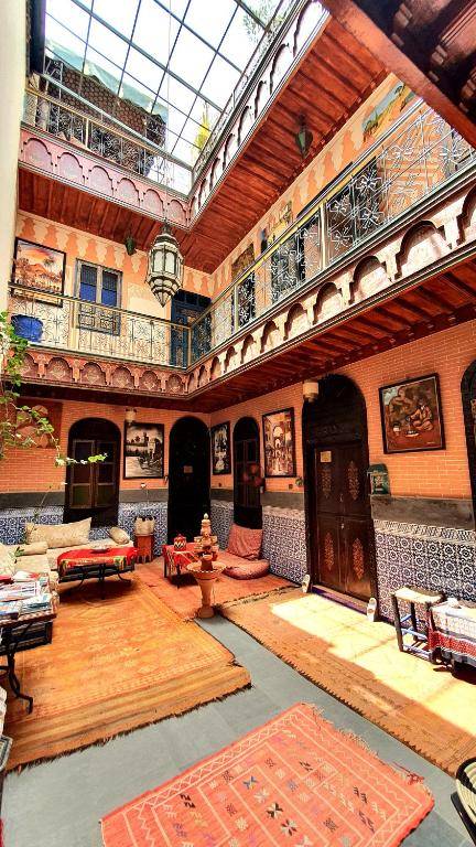 Riad mamahouse kech is a bed and breakfast located a short walk from Le Jardin Secret. It features a garden, terrace, and air-conditioned rooms with free WiFi and private patios. Each unit has a kitchen and private bathroom, with some also having a seating area or balcony. Guests can enjoy a halal breakfast every morning. The bed and breakfast is close to popular attractions such as Mouassine Museum and Souk of the Medina. The nearest airport is Marrakech-Menara, which is 2.5 miles away and offers a paid airport shuttle service.