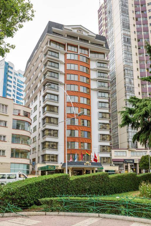 Ritz Apart Hotel is located in a residential area of La Paz and offers free WiFi and convenient access to various embassies. It is also close to the new cableway stations and the Boutique Roaster café. The hotel has 70 luxurious suites spread across 12 floors, all equipped with cable TV and some with balconies overlooking the city. Guests can enjoy massage treatments and seek advice on excursions from the tour desk. Duke's Restaurant offers a variety of local and international dishes, available through room service with strict biosafety protocols in place. The hotel is a 20-minute drive from the airport and offers shuttle services for a fee.
