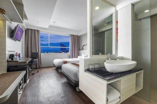 Citadines Royal Bay Makassar is a hotel located in Makassar, offering an outdoor pool and views of the sea. The hotel is situated 2625 feet from Losari Beach and features an on-site restaurant and room service. Free WiFi and private parking are available for guests. Each room is equipped with air conditioning, a flat-screen TV, and a private bathroom with shower, slippers, and free toiletries. Some rooms also offer views of the pool or city. The hotel has a 24-hour front desk and can assist with luggage storage, laundry service, and airport transfers for an additional fee. The nearest airport is Hasanuddin Airport, 11 miles away.