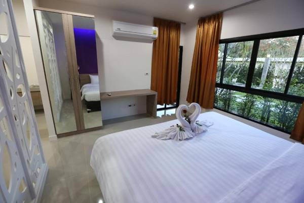 S4 Nai Yang Beach - SHA EXTRA PLUS is a 24-hour secured hotel with free WiFi and a range of amenities including a car power charging station and convenience store. Recreational facilities include a fitness center, children's playground, and outdoor pool with a kids' area and sun loungers. The hotel is conveniently located near various attractions. Each room has a flat-screen TV, private bathroom, and some have mountain or pool views. Extras like bathrobes, slippers, and toiletries are provided. The property also has a 24-hour front desk and is just 0.6 mi from Phuket International Airport.