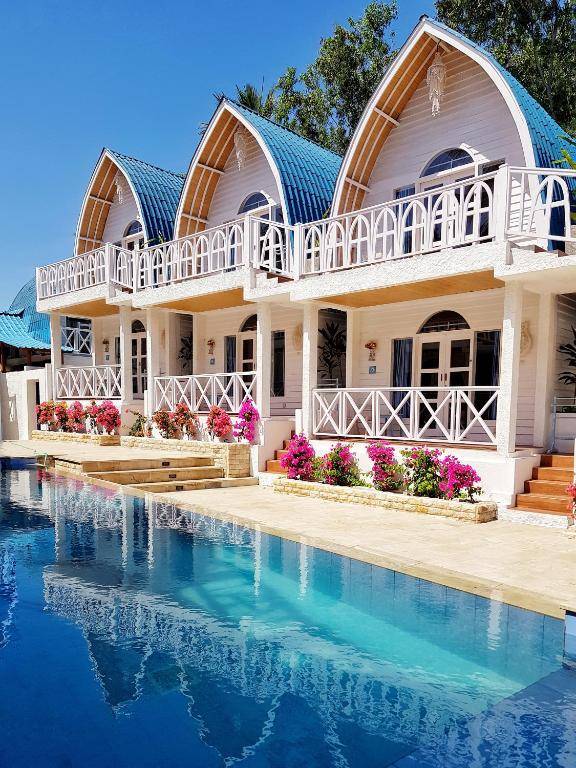 Santorini Beach Resort, located in Gili Trawangan, Lombok, draws inspiration from the picturesque Santorini Island in Greece. The property boasts charming, whitewashed bungalows adorned with blue accents and surrounded by vibrant bougainvillea. Guests can enjoy modern amenities and an outdoor pool, as well as free WiFi throughout the property. The resort is conveniently situated just a short walk from Gili Trawangan Harbor and other popular attractions such as Turtle Conservation Gili Trawangan and Sunset Point. All bungalows are equipped with a seating area, flat-screen TV, and private bathroom with complimentary toiletries and a bath. Some units also feature a balcony. Air conditioning and a wardrobe are included in all rooms. Guests can start their day with a continental breakfast and seek travel recommendations from the friendly reception staff.