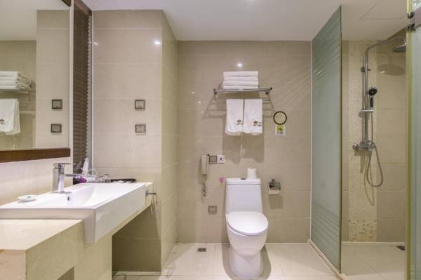 Sanya Sun and Sea Gueshouse is a condo hotel located near Dadonghai Beach, offering air-conditioned accommodations with a balcony. Each unit includes a sofa, seating area, TV with cable channels, well-equipped kitchen, safety deposit box, and private bathroom with slippers. Towels and bed linen can be provided for an additional fee. The property is close to popular attractions such as Nanshan Temple and Luhuitou Park, and is 9 miles from Sanya Phoenix International Airport.