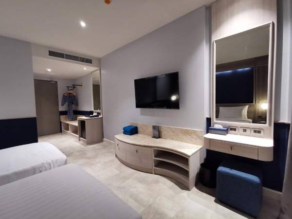 Seabed Grand Hotel Phuket - SHA Extra Plus is a hotel located in Phuket, 2.8 miles away from Chinpracha House. It offers a range of amenities including a restaurant, free private parking, an outdoor pool, and a fitness center. Other facilities include a bar, shared lounge, 24-hour front desk, shuttle service, and free WiFi. The guest rooms are equipped with air conditioning, a seating area, flat-screen TV, safety deposit box, and private bathroom with bathrobes and slippers. Some rooms have a balcony with pool views. The hotel also has a sun terrace and serves à la carte breakfast. It is located near popular attractions such as Thai Hua Museum and Old Phuket Town, and is 21 miles away from Phuket International Airport.