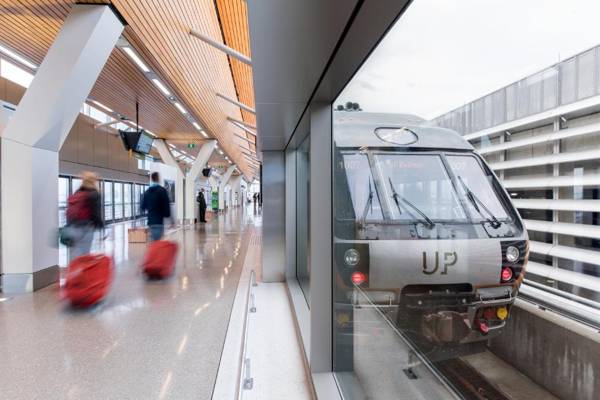 This Sheraton Gateway Hotel is conveniently located inside Pearson International Airport and connected to Terminal 3. It offers direct access to the UP Express to downtown Toronto in under 30 minutes. Guests can check-in for their flight and print boarding passes from the hotel lobby. The hotel also features an indoor swimming pool, WiFi for an extra cost, &More Restaurant serving international cuisine, and a bar for drinks.