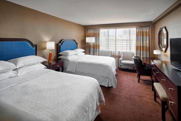 The Sheraton Inner Harbor hotel in Baltimore is conveniently located near popular attractions and the Convention Center. The hotel offers modern amenities and all guestrooms are non-smoking. Guests can easily walk to nearby sites such as Oriole Park, the National Aquarium, and the Maryland Science Center. The hotel's concierge services can assist with arranging tours and reservations. Rooms feature comfortable Sweet Sleeper beds, flat-screen TVs, and free Wi-Fi. The hotel also has a fitness center, car rental services, and a gift shop on-site.