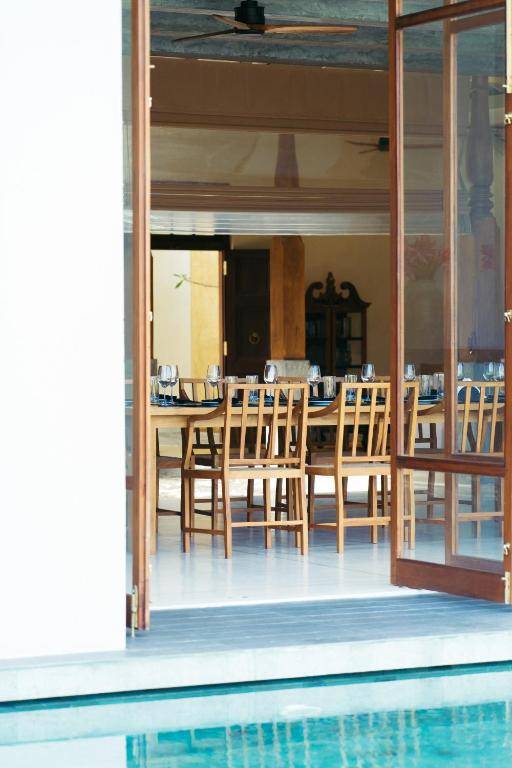 Sitara Villa by The Serendipity Collection is a luxurious villa in Weligama that offers free WiFi, air conditioning, a restaurant, and access to a beautiful garden with a year-round outdoor pool. The villa has 4 bedrooms, 4 bathrooms, a fully equipped kitchen, and a patio with stunning pool views. Guests can enjoy a continental breakfast and have access to free private parking and a 24-hour front desk. The villa also offers a terrace and a bicycle rental service. It is conveniently located near Weligama Beach and Mirissa Beach, making it the perfect destination for a relaxing vacation.