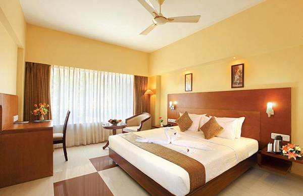 Sreevalsam Residency is a hotel in Trivandrum that offers a bar, garden, and family rooms. It is located near popular attractions like Napier Museum and Sree Padmanabhaswamy Temple. The hotel has a restaurant, 24-hour front desk, and room service, as well as free WiFi. Rooms are equipped with amenities like air conditioning, a flat-screen TV, and a private bathroom with bathrobes and slippers. Some rooms even have a patio. Guests can also enjoy a terrace, business center, and snack bar. The nearest airport is Thiruvananthapuram International Airport, 14 miles away.
