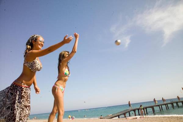 Sunrise Resort Hotel is a beachfront property with a private sandy beach and a lush green garden. Guests can enjoy large outdoor pools, water slides, and spa facilities including a sauna and Turkish bath. The modernly decorated rooms come equipped with air conditioning, satellite TV, and a mini-bar, with some offering sea views. The resort has a main restaurant serving buffet-style meals and several à la carte restaurants offering a variety of international cuisines. There are also 7 bars on site, and the entertainment team organizes daily activities and nightly shows. The resort also boasts 17 tennis courts and 4 football fields. Located 12 miles from Side town center, the resort is easily accessible from Antalya Airport, which is 50 miles away.