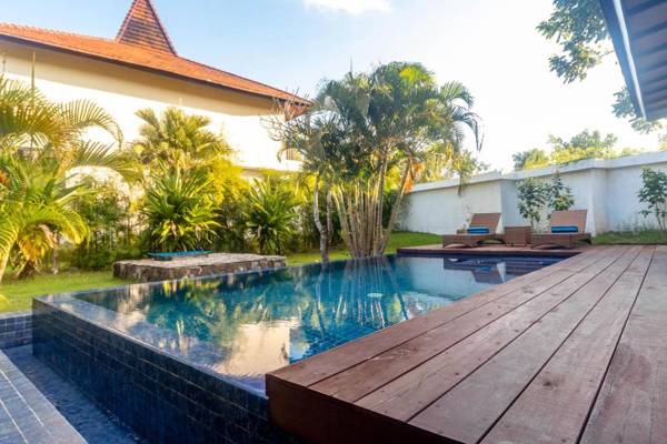 Surya Melasti Beach Villa in Ungasan offers garden views and a range of amenities including a restaurant, 24-hour front desk, snack bar, garden, outdoor pool, and sun terrace. The villa features a seating area with a flat-screen TV and a private bathroom with bathrobes, slippers, and bidet. Some units also have a dining area and balcony. Guests can enjoy a à la carte or American breakfast and relax in the shared lounge area. The villa is located near popular attractions such as Melasti Beach, Karma Beach, and Green Bowl Beach. The nearest airport is Ngurah Rai International, 7 miles away, and the villa offers a paid airport shuttle service.