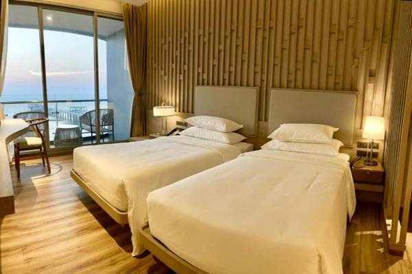 Symphony of The Sea is a 4-star hotel located in Bangsaen, offering beachfront accommodations with a restaurant, bar, and garden. The property has family rooms and a 24-hour front desk, room service, and tour organizing services. Guests can enjoy a buffet or American breakfast and have access to a hot tub. The hotel is located 22 miles from Pattaya and 25 miles from Jomtien Beach, with the nearest airport being Suvarnabhumi, 33 miles away. A paid airport shuttle service is available for guests.