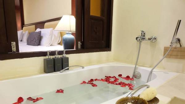The Rim is a boutique hotel located in Chiang Mai's Old City, featuring traditional Lanna architecture, lush gardens, and an outdoor pool. It is within walking distance of the Sunday Walking Street and offers free Wi-Fi throughout. The rooms are decorated with wooden interiors and Thai fabrics, and each has a private balcony, flat-screen TV, and mini-bar. The hotel offers a 24-hour front desk, car rental service, and assistance with sightseeing. There is also a fitness room and walking paths in the garden. The on-site restaurant, The Canal, serves a buffet breakfast and a variety of local and international dishes. The hotel is a 10-minute drive from Chiang Mai International Airport and the night bazaar.