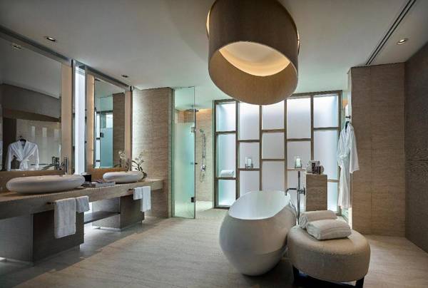 The Ritz-Carlton Koh Samui - SHA Extra Plus is a luxurious hotel situated on 58 acres of land in Choeng Mon Beach, with stunning ocean views. The 5-star hotel offers a fitness center and free WiFi, as well as a children's playground and barbecue facilities. All rooms are air-conditioned and feature a seating area, TV, and private bathroom with free toiletries. Some rooms also have a terrace and sea views. Guests can enjoy an American breakfast and dine at the on-site restaurant specializing in Asian cuisine. The hotel also has a terrace and offers activities such as cycling. The staff, fluent in English, Thai, and Chinese, are available 24/7 at the reception to assist guests with sightseeing, ticketing, and business needs. The hotel is located 1.8 mi from Bang Rak Pier and 2.5 mi from Samui Airport.