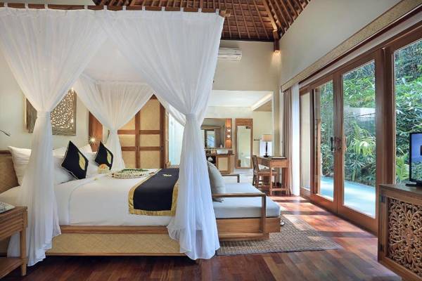 The Sankara Suites & Villas is a resort located in Ubud, with beautiful views of the surrounding valley and greenery. It offers an outdoor pool, fitness center, and free WiFi for all guests. The rooms are decorated with Balinese elements and equipped with air conditioning, a flat-screen TV, and a private bathroom. Guests can enjoy breakfast at the property and dine at the on-site restaurant or bar. The resort also has a business center and a 24-hour front desk with English and Indonesian-speaking staff. Nearby attractions include Ubud Market, Ubud Palace, and the Ubud Monkey Forest. The nearest airport is Ngurah Rai International Airport, located 19 mi away.